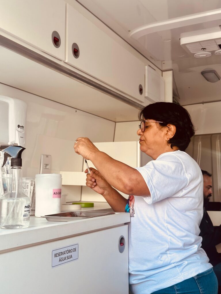 O Vacimóvel é uma van equipada com refrigeração, pia para higienização, cadeiras, mesas e armários, oferecendo toda a estrutura necessária para que as equipes de saúde realizem o trabalho com segurança, agilidade e conforto.